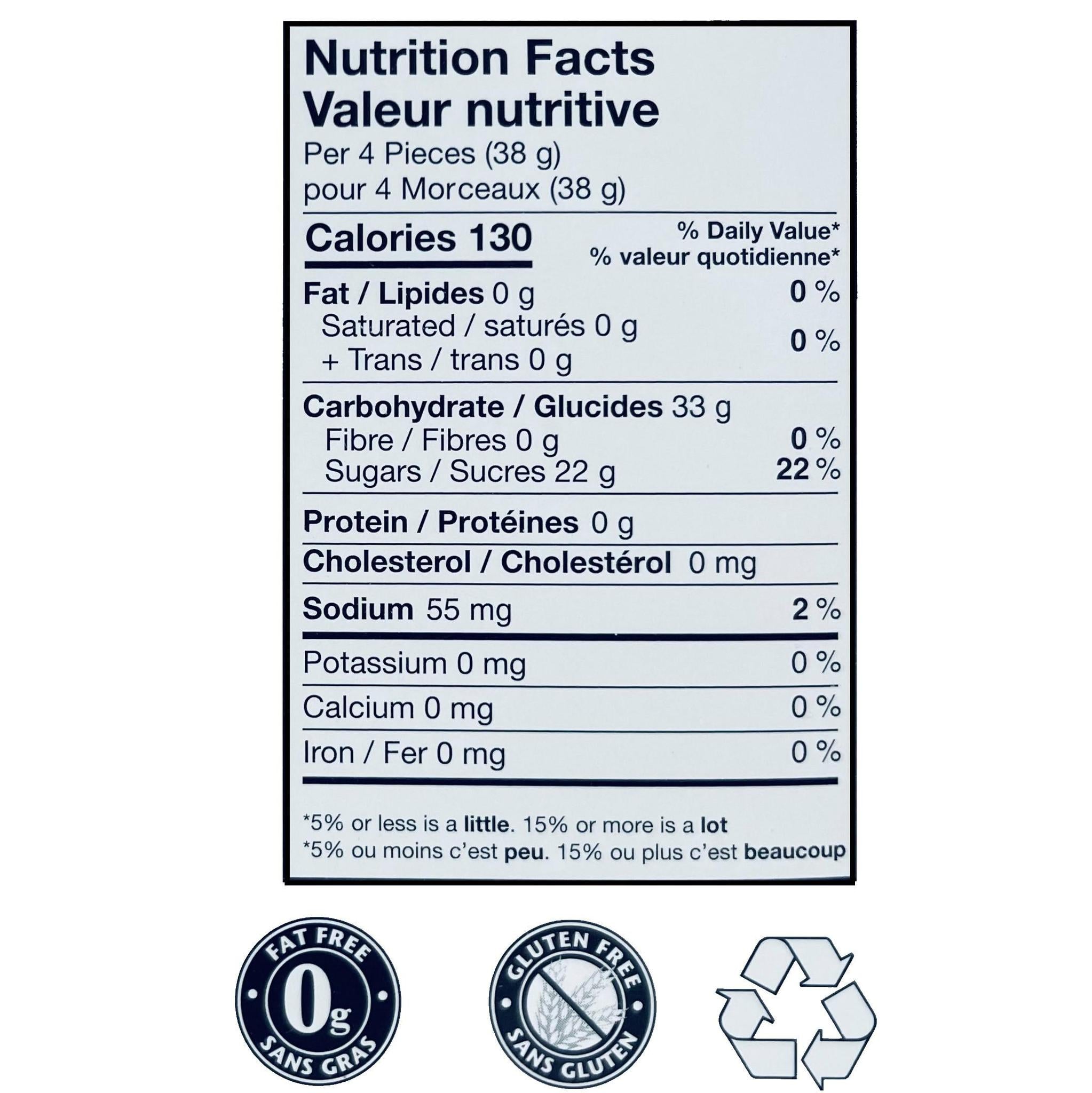 Ganong’s Fruitfull Jellies are crafted from premium quality ingredients made with natural colours and flavours, a natural pick for all ages. Infused with real fruit purees sourced from around the globe, they are a healthy snack that is 100% fat-free, gluten free and cholesterol-free. Savour this fine selection of treasured favourites- Raspberry, Strawberry, Blueberry, Lemon, Orange, and Peach.